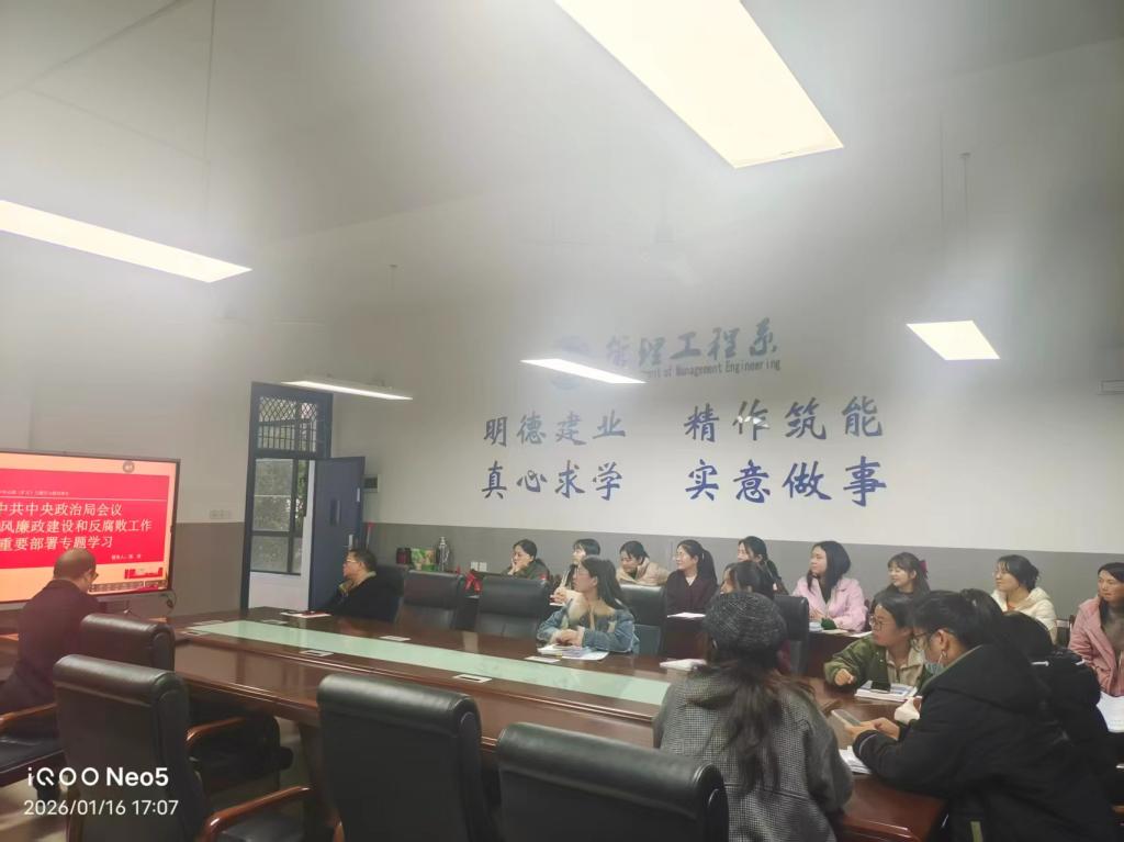 为持续强化理论武装,筑牢思想根基,严明纪律规矩。1月16日下午,管理工程系各党支部分别组织开展一月份政治理论学习,会议由各党支部书记主持,系部全体教职工与学生党员参会。